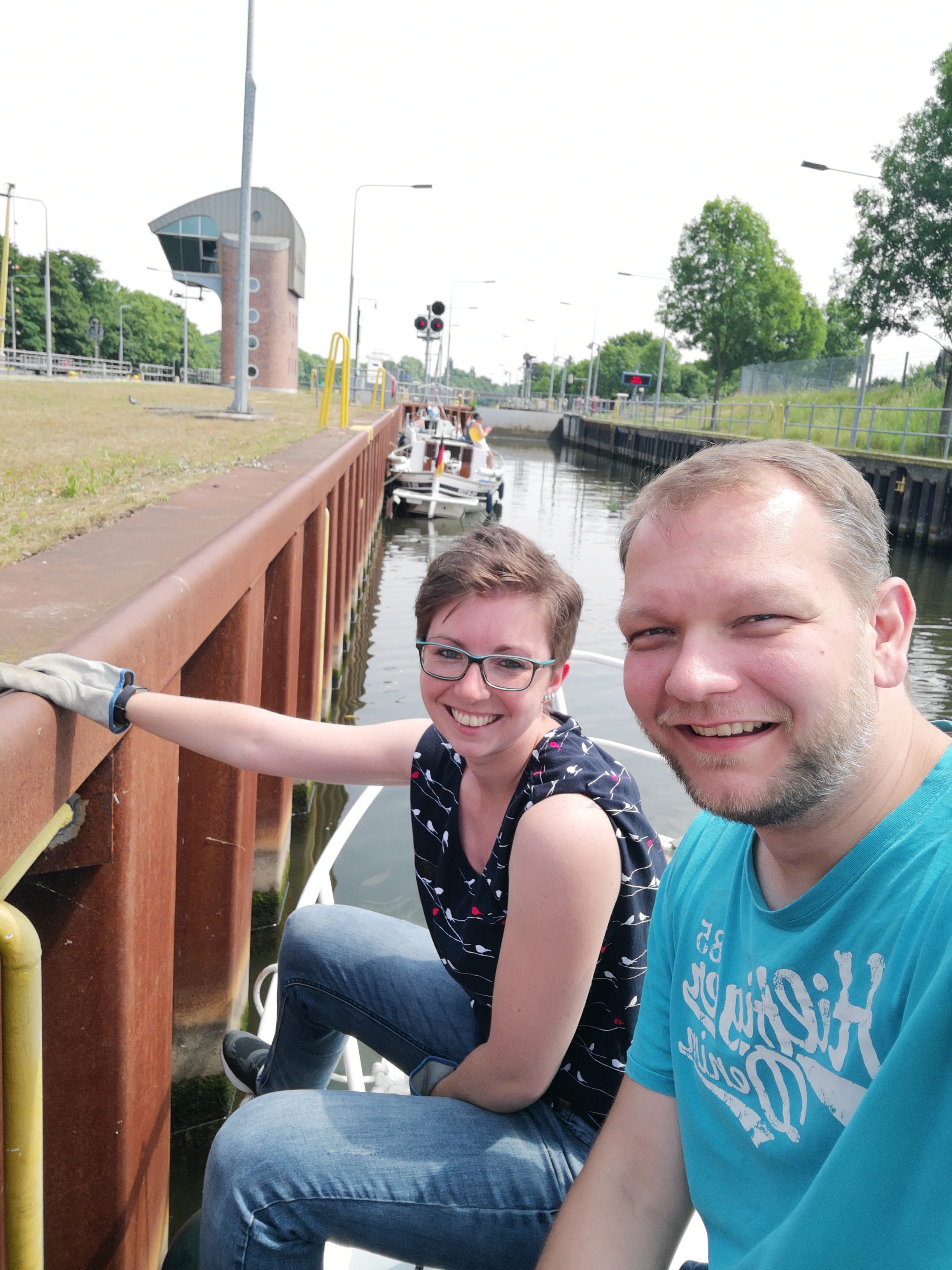 Nackter Mann schwimmt im Kanal! Außerdem Einfahrt Schleuse Venhaus, zusammen mit einem Holländer.