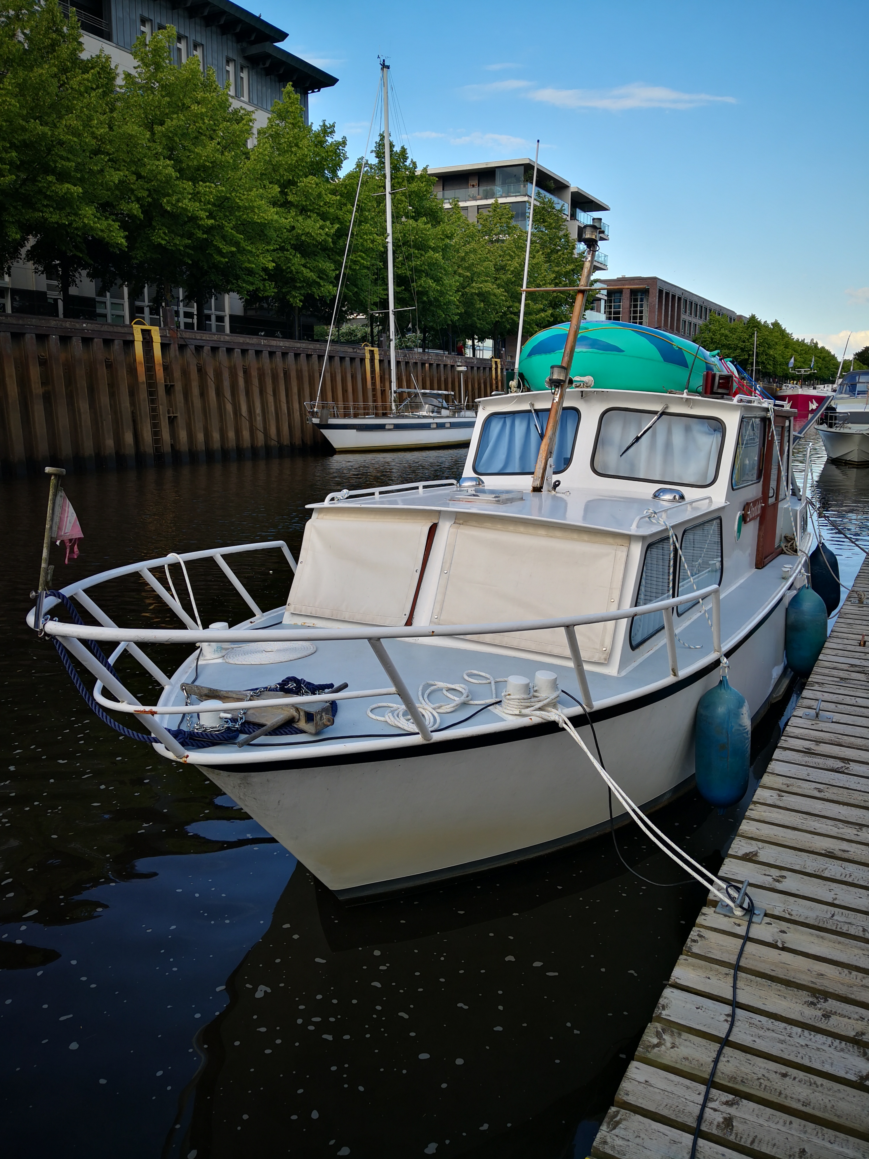 In Fuestrup werden die Boote nach Schönheit und Größe gestaffelt. Wir mussten über 1 km laufen und über eine Fähre, um zu den Duschen zu gelangen.