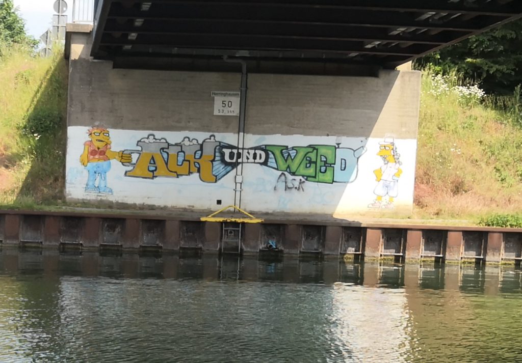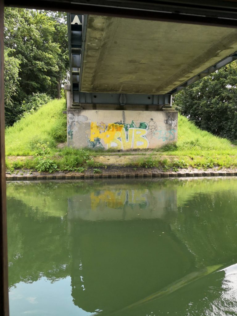 Schleuse voraus! Wo kommt die denn her?!? Nie findet man km – Angaben, wenn man sie mal braucht.