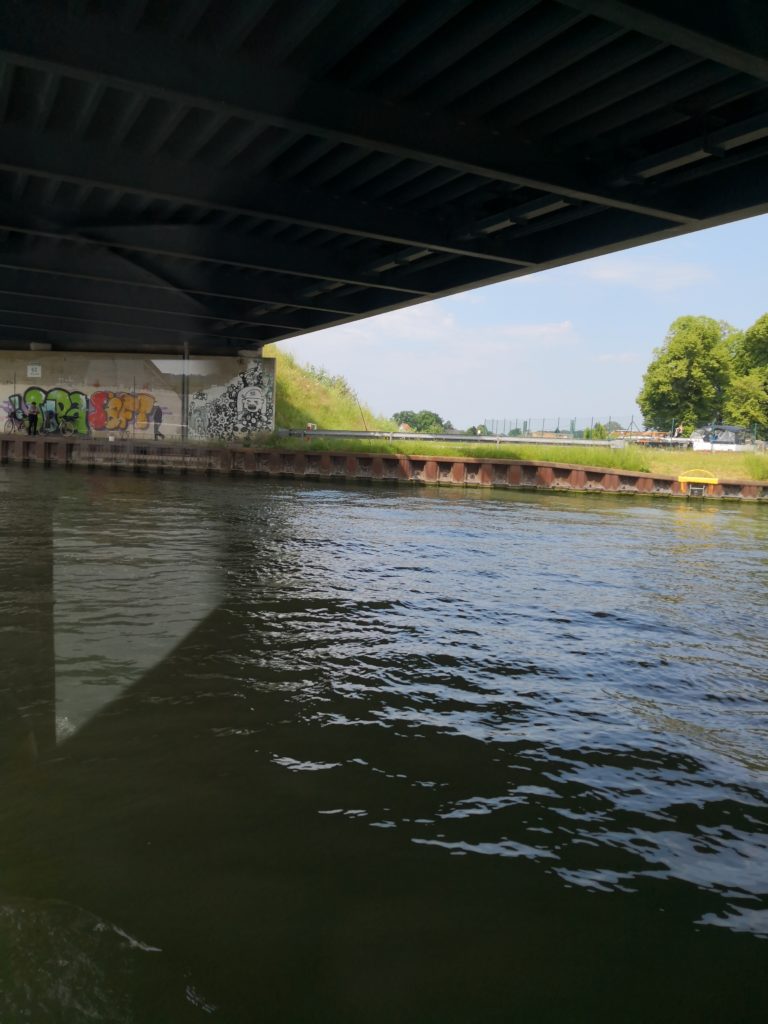 13:51 Uhr Sportboot Strolchi schwimmt jetzt auf Weserwasser. (km 206,2)